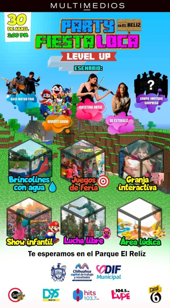 En el marco del Día de la Niñez, el Gobierno Municipal, a través del DIF y en conjunto con Multimedios, invita a las niñas y niños de Chihuahua Capital, así como a sus familias, a festejar este día en la “Party Fiesta Loca”.