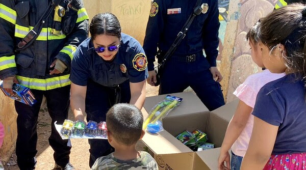 La Dirección de Seguridad Pública Municipal (DSPM) ofreció un festejo a hijas e hijos de empleados con motivo de Día de la Niñez, el cual contó con la visita de policías y bomberos del 22 al 30 de abril a diversos centros habitacionales ralámuli y la casa hogar Refugio del Amor con la entrega de dulces, alimentos y en algunos casos juguetes.