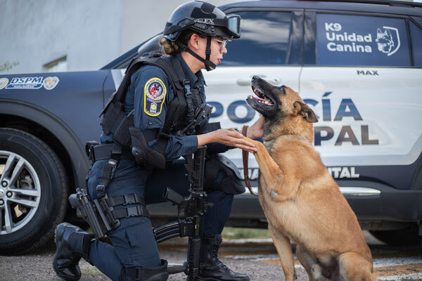 Actualmente la DSPM cuenta con trece perros de la raza pastor belga malinois y golden retriever, entrenados con expertos para brindar seguridad a los chihuahuenses y los cuales desde el inicio de su vida laboral duran en promedio 9 años como fieles servidores, debido al estrés físico y psicológico al que se enfrentan. Posteriormente se jubilan y son entregados a los mismos policías para ser cuidados hasta su deceso.