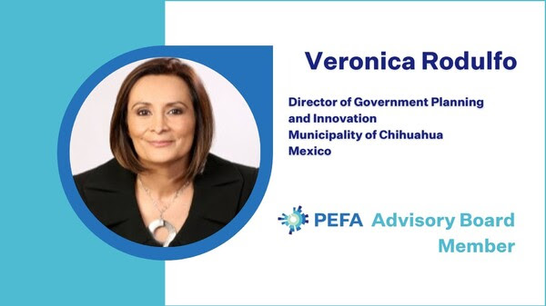 Son miembros del Consejo Asesor de PEFA además de la Mtra. Verónica Rodulfo, Directora de Planeación e Innovación Gubernamental del Municipio de Chihuahua, Grace Ntekere, directora de Finanzas, de Ministerio de Gobierno Local y Desarrollo Rural de Botswana; Vincent Nkurunga, coordinador de la Unidad Única de Implementación del Proyecto (SPIU) del Ministerio de Finanzas y Planificación Económica de Ruanda; Srinivasan Kesavan, miembro del Consejo Gubernamental para Estándares Contables, India; Antonia Ida Grafl, experta y profesora de la Universidad de Ciencias Aplicadas de Suiza; Tiago Dutra, Secretario de Auditoría de Brasil, Jordi Baños Rovira de Cataluña, Mark Miller Director de Estrategia Global en el Instituto para el Desarrollo del Exterior y Thomas Solomon de USAID