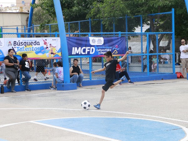 En las canchas multiusos de la colonia Chihuahua 2000, se realizaron activaciones de fútbol, basquetbol y atletismo, con el objetivo de detectar talentos y habilidades de niñas y niños de nivel primaria para ser canalizados con academias de iniciación y formación deportiva, cercanas a la colonia.