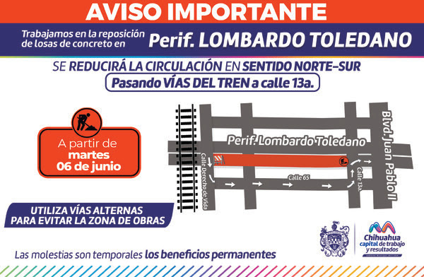 El trabajo consistirá en repavimentar con losas de concreto en los tramos más deteriorados de dicha avenida, por lo que se exhorta a la ciudadanía a tener paciencia por las afectaciones que esto pudiera causar y utilizar vías alternas para evitar contratiempos.