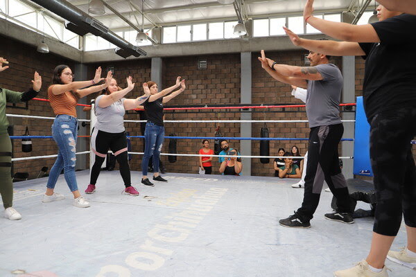 Como parte del programa “Siempre Acompañadas”, de la Dirección de Seguridad Pública Municipal (DSPM), mujeres de la colonia Riberas de Sacramento se reunieron en el Gimnasio de Box que se encuentra en la misma, donde tuvieron la oportunidad de recibir pláticas preventivas y un taller de defensa personal, que les ayudarán a saber cómo actuar en caso de sufrir alguna agresión en la vía pública o en el hogar.