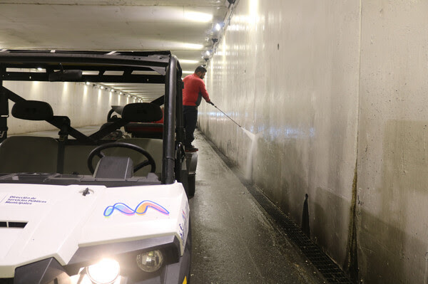 Con el objetivo de mantener una buena imagen urbana, el Gobierno Municipal, a través de la Dirección de Servicios Públicos, trabaja en el lavado de paredes del túnel ubicado en la avenida Independencia.