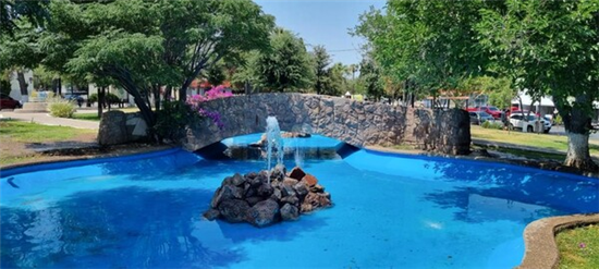El parque Vallina, uno de los lugares más reconocidos y frecuentados por familias de Chihuahua, se encuentra frente a la Quinta Gameros en el centro histórico de la capital. Para el disfrute de los asistentes al Festival Antojos, organizado por el Gobierno Municipal, la Dirección de Mantenimiento Urbano ha llevado a cabo las labores necesarias para restaurar la fuente de este espacio público. La fuente estará en funcionamiento únicamente durante este fin de semana.