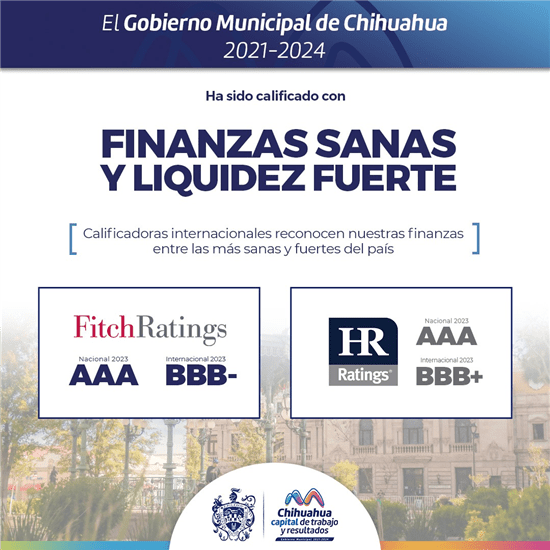 Es relevante mencionar que, según el Instituto para el Desarrollo Técnico de las Haciendas Públicas (INDETEC), Chihuahua Capital se encuentra entre los 12 municipios con calificación AAA, con 11 alcaldías reconocidas por Fitch Ratings y tres ayuntamientos reconocidos por HR Ratings.