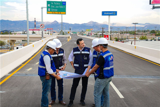 El alcalde de Chihuahua, Marco Bonilla Mendoza, realizó una inspección en el Paso Superior del Distribuidor Vial Sur para finalizar los últimos detalles antes de su apertura, en beneficio de las familias que transitan diariamente por esta área para llegar a sus hogares o lugares de trabajo.