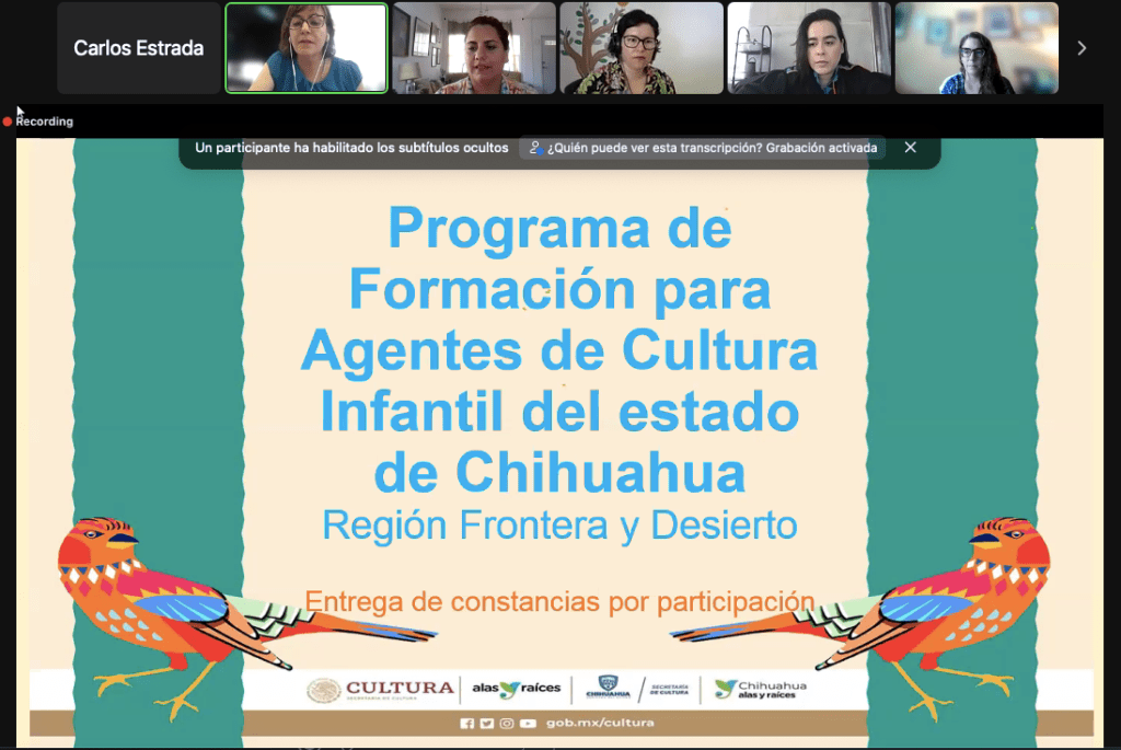 Con el propósito de fomentar el desarrollo de expertos en arte y cultura, la Secretaría de Cultura del Estado de Chihuahua, en colaboración con la Coordinación Nacional de Desarrollo Cultural Infantil (CNDCI) a través del programa Alas y Raíces, brindó capacitación a promotores culturales, talleres, docentes y otros profesionales afines en los municipios de Chihuahua, Ciudad Juárez y Ojinaga. Esta formación se llevó a cabo mediante el programa de Formación de Agentes de Cultura Infantil.