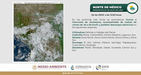 Se espera que haya lluvias moderadas a puntuales en municipios como Guazapares y Urique, con el riesgo de inundaciones repentinas, por lo que la CEPC recomienda a los residentes de ambas regiones que tomen las precauciones necesarias y eviten transitar por áreas de riesgo.