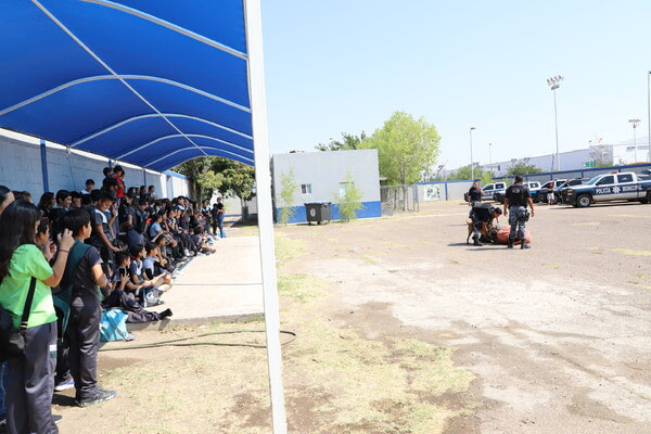 Durante el mes de junio, más de 600 estudiantes de siete escuelas de educación básica concluyeron su ciclo escolar 2022-2023 con visitas guiadas a las instalaciones de la Dirección de Seguridad Pública Municipal (DSPM). Durante estas visitas, los estudiantes tuvieron la oportunidad de conocer la Plataforma Escudo Chihuahua Capital (PECUU), presenciar demostraciones del grupo canino K9 y recibir charlas preventivas sobre el autocuidado para evitar incidentes en el hogar o en la vía pública.