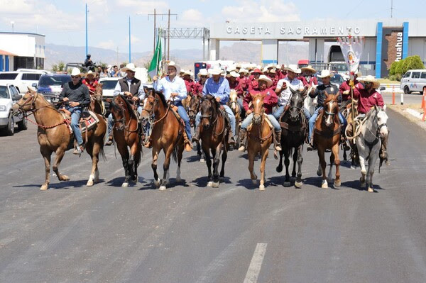 El alcalde de Chihuahua Capital, Marco Bonilla Mendoza, recibió en la caseta de Sacramento a los jinetes provenientes de Ciudad Juárez, Ascensión, Maguarichi y Conchos, quienes se unieron a la Cabalgata Villista. El contingente entregó la bandera de México al Presidente Municipal antes de continuar su recorrido hacia el Centro Histórico, desde donde partirán hacia Parral al día siguiente.
