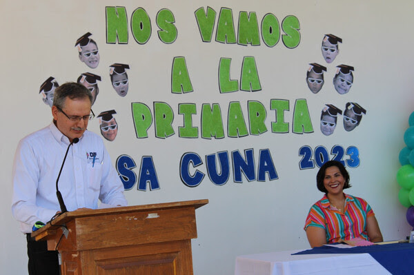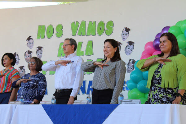 El director del DIF Estatal, Gabriel Eguiarte Fruns, la procuradora de Protección a Niñas, Niños y Adolescentes, María Guadalupe Álvarez, la directora de la Casa Cuna, María Luisa Reza, y la directora Administrativa, Perla Natalye Campos, acompañaron a los graduados durante el evento, donde disfrutaron de números musicales organizados por el personal docente.