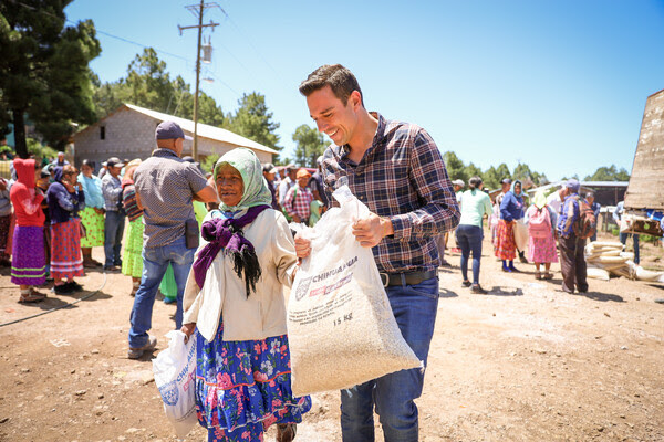 El secretario de Pueblos y Comunidades Indígenas, Enrique Rascón, y el alcalde Marcelo Rascón Félix, realizaron la entrega de paquetes de maíz y frijol en la comunidad de Lagunitas, como parte de la estrategia «Juntos por la Sierra Tarahumara».