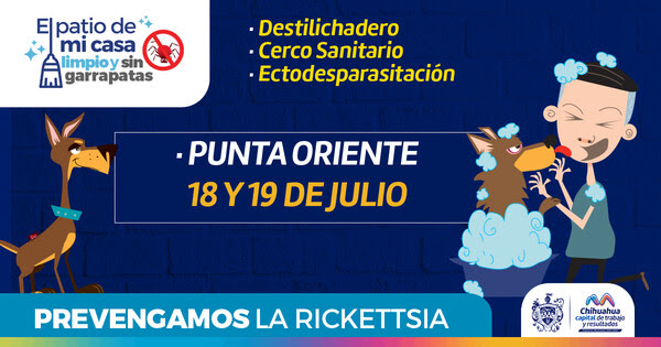 El Gobierno Municipal de Chihuahua, a través del Instituto Municipal de Prevención y Atención a la Salud (IMPAS), se unirá con el Municipio de Aquiles Serdán para llevar a cabo acciones de prevención contra infecciones por mordeduras de garrapatas mediante el programa «El Patio de Mi Casa». Esta iniciativa se llevará a cabo los días 18 y 19 de julio en la colonia Punta Oriente, desde las 9:30 hasta las 14:00 horas.