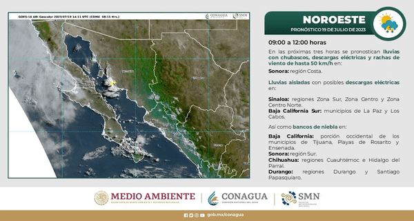 El pronóstico meteorológico para este miércoles indica que el Monzón Mexicano generará un ambiente extremadamente caluroso por la tarde.