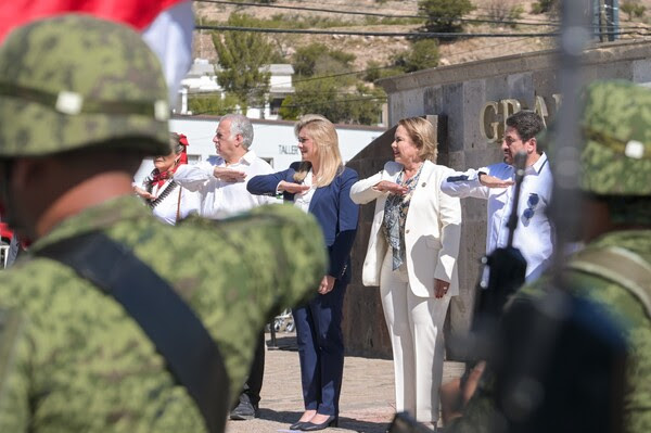 La gobernadora Maru Campos encabezó una emotiva ceremonia en la ciudad de Parral para rendir homenaje al general Francisco Villa en el marco del centenario de su fallecimiento. El evento tuvo lugar al pie del monumento dedicado al icónico líder revolucionario conocido como el «Centauro del norte». La mandataria estatal lideró la Guardia de Honor, marcando el inicio de las conmemoraciones por el primer Centenario Luctuoso de Villa.