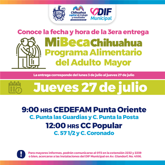 Para obtener más detalles e información, los beneficiarios pueden comunicarse al 072, en las extensiones 2232 y 2239, o visitar las instalaciones del DIF Municipal ubicadas en la avenida Glandorf, número 4106, frente al Club de Leones, de lunes a viernes en un horario de 9:00 am a 3:30 pm.