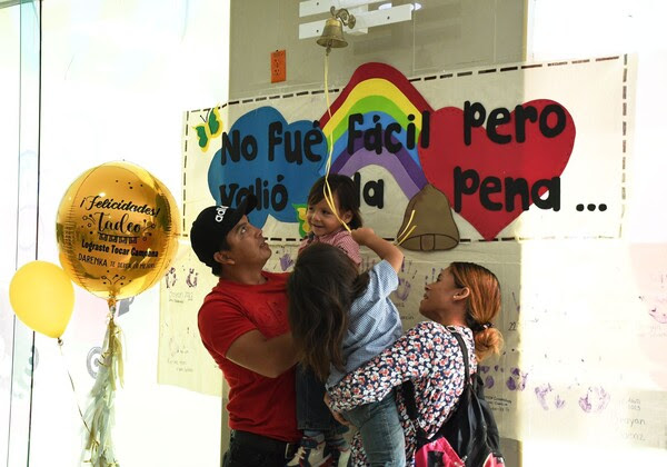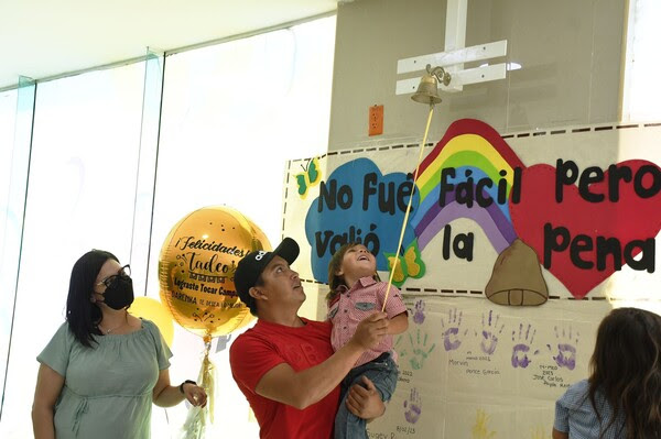Después de siete meses de recibir quimioterapia y un año más bajo la supervisión médica, Tadeo, un niño de tan solo 3 años de edad de Jiménez, finalmente completó su tratamiento contra el cáncer, marcando el hito simbólico de su recuperación al tocar la campana en el hospital.
