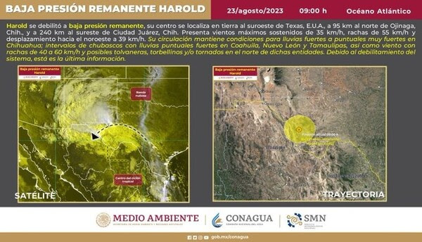 La Coordinación Estatal de Protección Civil (CEPC) ha informado que la depresión tropical Harold, junto con el monzón mexicano, causarán lluvias considerables en áreas del norte del estado.