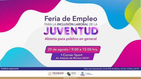 La realización de esta Feria de Empleo para la Inclusión Laboral de la Juventud coincide con el Día Internacional de la Juventud. Si tienes dudas, puedes llamar a la línea telefónica (614) 429-33-00 en las extensiones 12176, 24737 y 12183.