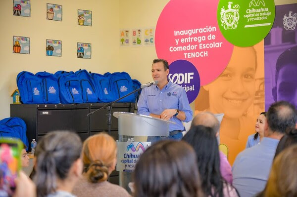 El alcalde de Chihuahua, Marco Bonilla, lideró la inauguración y entrega del espacio de comedor en la escuela primaria Tenoch. El objetivo es asegurar que los estudiantes que asisten reciban desayunos recién preparados y calientes.