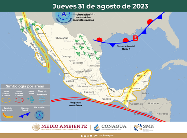 Por otro lado, la nubosidad originada por el monzón mexicano dará lugar a lluvias dispersas en la región sur de la Sierra Tarahumara.