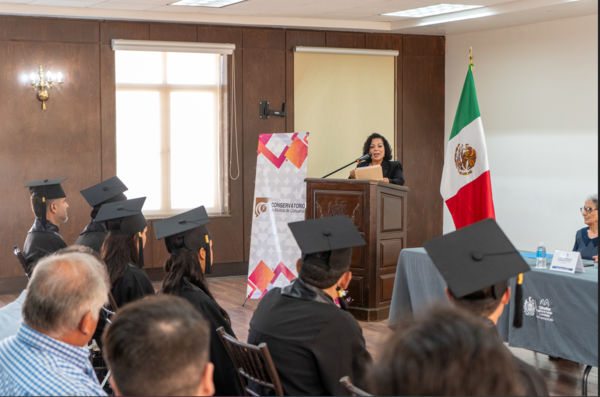 El Instituto de Cultura del Municipio, en nombre del Gobierno Municipal, llevó a cabo la ceremonia de graduación de los alumnos del Conservatorio de Música de Chihuahua, una institución que ha estado sirviendo a la comunidad durante 26 años, formando músicos profesionales y guiándose por su lema «Transformando vidas a través de la música».