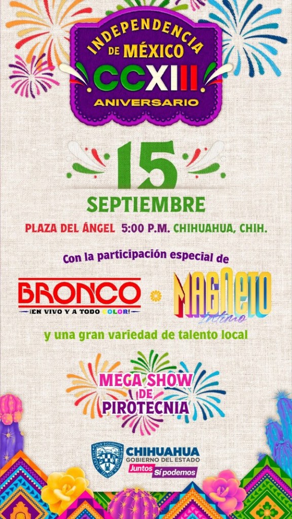Con motivo del 213 aniversario del inicio del Movimiento de Independencia, el Gobierno del Estado ha preparado una celebración especial que incluirá un espectáculo de música y fuegos artificiales sin precedentes. Este evento se llevará a cabo el 15 de septiembre en la Plaza Mayor y contará con la participación de la gobernadora Maru Campos, quien dará el tradicional Grito desde el balcón principal del Palacio de Gobierno.
