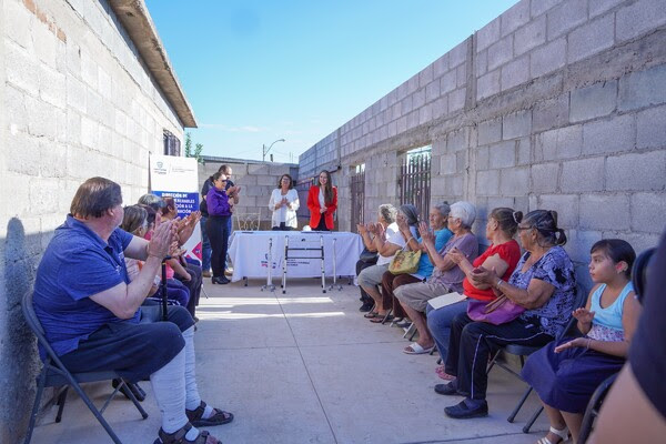 Veinte personas mayores que asisten regularmente al Club del Abuelo en la colonia Felipe Ángeles de Chihuahua recibieron diversos dispositivos prácticos para mejorar su movilidad en las actividades diarias.