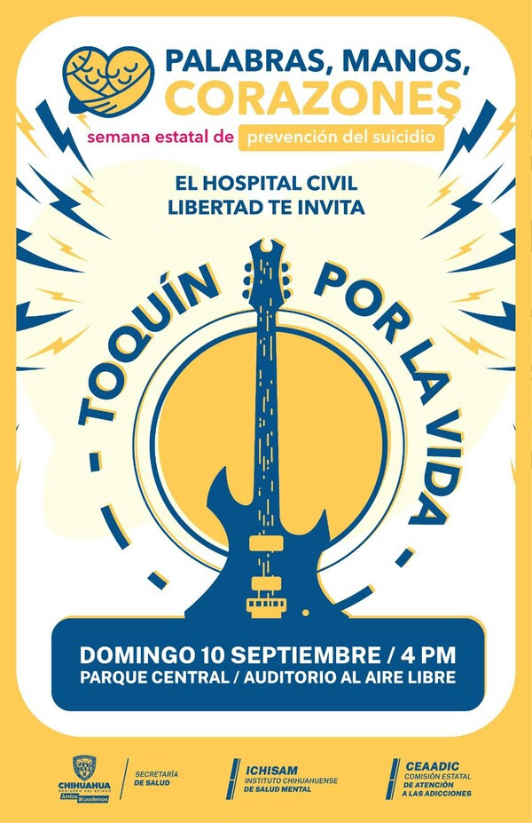 Además, el 10 de septiembre, a partir de las 4 de la tarde, se llevará a cabo el evento «Toquín por la Vida» en el auditorio al aire libre del Parque Central de Ciudad Juárez.