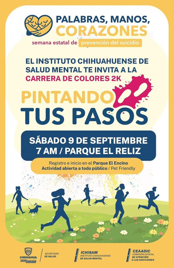 Las actividades continuarán el 9 de septiembre con la «Carrera de colores 2k Pintando tus Pasos» en el Parque El Reliz de la ciudad de Chihuahua, un evento familiar y pet-friendly que comenzará a las 7 de la mañana.