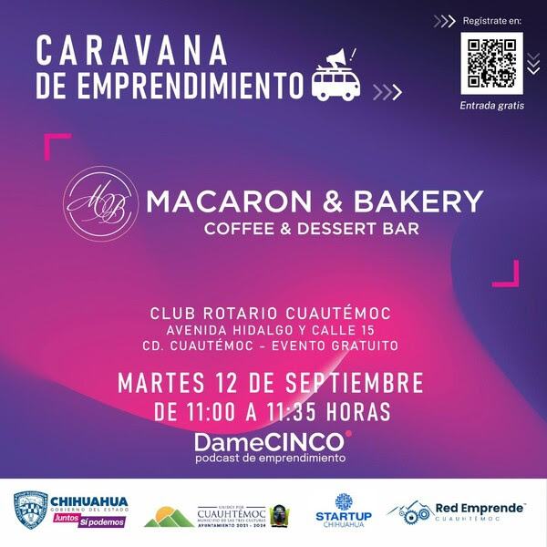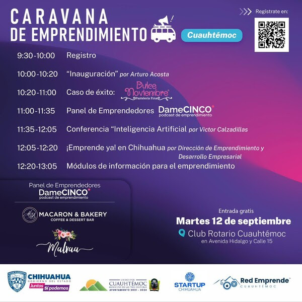El evento se llevará a cabo en el Club Rotario de Cuauhtémoc, ubicado en Avenida Hidalgo y Calle 15, y cuenta con el apoyo del Gobierno Municipal de Cuauhtémoc, Startup Chihuahua y Red Emprende Cuauhtémoc.