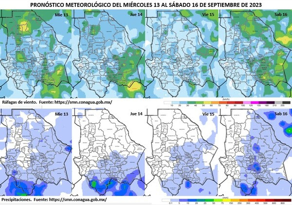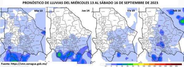 Las lluvias variarán en intensidad, y en algunos lugares como Urique, Batopilas, Guadalupe y Calvo, Morelos, Balleza y Manuel Benavides, se esperan chubascos moderados de 5.1 a 25 milímetros (mm). En otros lugares como Chínipas, Guazapares, Guachochi, Satevó, Rosales, Delicias, Saucillo, Camargo, Parral, Santa Bárbara, Matamoros, Allende, Jiménez, Coronado, Coyame y Ojinaga, las lluvias serán más dispersas, de 2.1 a 5 mm. También se pronostican lluvias aisladas, de 0.1 a 2 mm, en diferentes municipios.