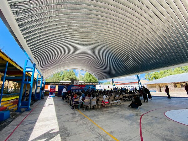 La Secretaría de Comunicaciones y Obras Públicas junto al DIF Estatal entregaron un nuevo domo en las canchas de usos múltiples de la escuela Antonio de Oreña, en Sisoguichi, que celebra su 116 aniversario, y que también beneficia al albergue Sagrado Corazón de Jesús, ubicado al lado.