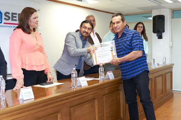 Héctor González Estudillo, director de SEECH, en representación de Sandra Elena Gutiérrez Fierro, titular de la SEyD, expresó su gratitud a los empleados honrados por su largo compromiso con la educación, que representa toda una vida dedicada a esta causa.