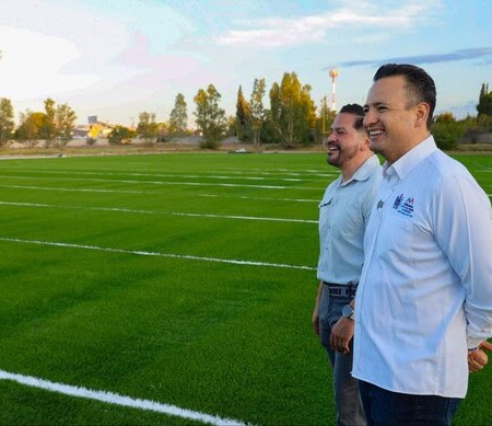 Alcalde supervisa obras de renovación de cancha de fútbol americano