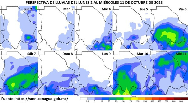 Las lluvias serán dispersas a moderadas, con chubascos en partes de las zonas sureste, como Jiménez y Allende. También habrá precipitaciones aisladas en otras regiones del estado, y es posible que estas lluvias vengan acompañadas de actividad eléctrica y granizo.