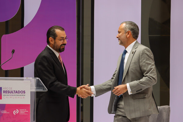 El secretario general de Gobierno, Santiago de la Peña Grajeda, en nombre de la gobernadora Maru Campos, expresó su agradecimiento por los esfuerzos y resultados del personal de la STPS y el CCL, alentándolos a seguir promoviendo la cultura de la paz laboral para los habitantes de Chihuahua.