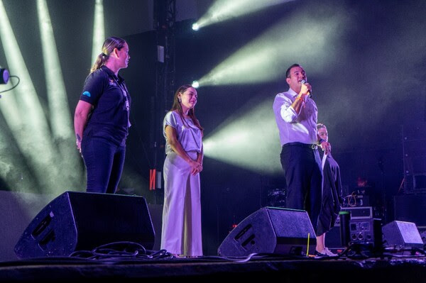 Para cerrar el evento, los cantantes de música romántica, Río Roma, interactuaron con el público, quienes se mostraron entusiasmados al cantar sus grandes éxitos y tomar una selfie tradicional en el escenario.