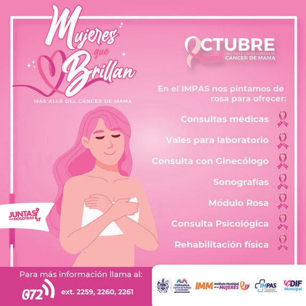 Con el objetivo de cuidar la salud de las familias de la capital, el Gobierno Municipal de Chihuahua, liderado por el alcalde Marco Bonilla, realizará el evento de salud llamado «Mujeres que Brillan» el 19 de octubre. El propósito de esta iniciativa es crear conciencia, prevenir y detectar oportunamente el cáncer de mama.