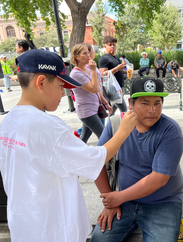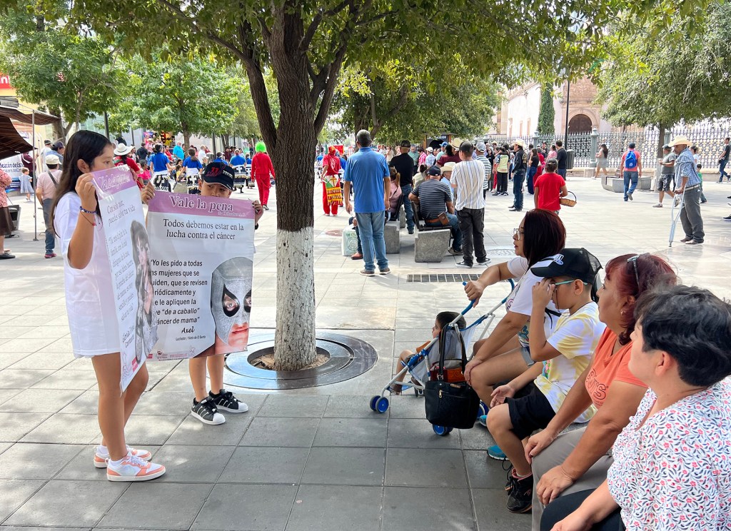Un grupo de niños de entre ocho y doce años sorprendió a la gente en el Centro Histórico de Chihuahua al detener a transeúntes, turistas y comerciantes para hablar sobre la importancia de detectar el cáncer de mama a tiempo. Vistiendo camisetas relacionadas con la lucha contra esta enfermedad, fueron invitados por la Asociación Civil «Vale la Pena de Chihuahua AC» para concienciar sobre el Día Internacional de la Lucha contra el Cáncer de Mama. Colocaron lazos rosados, el símbolo de esta causa, e incluso pintaron lazos en las mejillas de las personas.