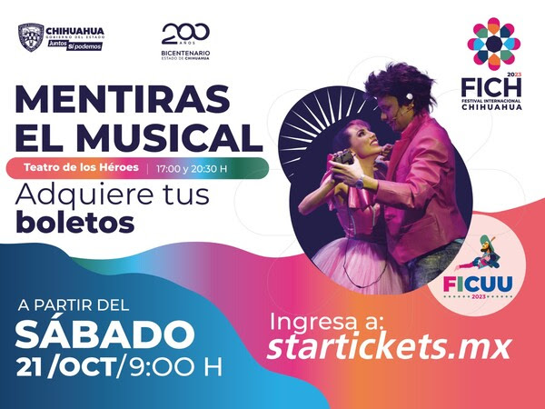 La Secretaría de Cultura, en colaboración con el Festival Internacional Chihuahua (FICh), el Municipio de Chihuahua y el Festival Internacional de la Ciudad de Chihuahua (FICUU), ha anunciado cómo obtener boletos gratuitos para asistir al espectáculo «Mentiras: El Musical».