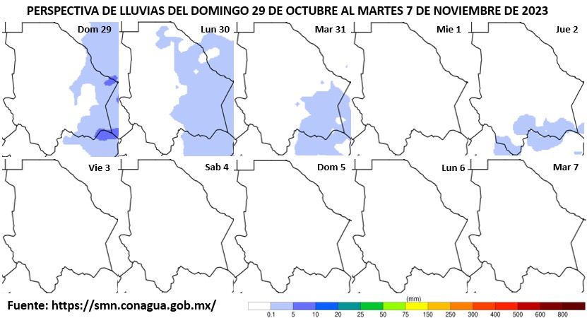 Además, para hoy domingo 29 de octubre, la CEPC advierte sobre vientos de 5 a 20 kilómetros por hora (km/h) con rachas que podrían superar los 55 km/h en algunas áreas del norte, incluyendo Juárez, Ascensión y Guadalupe, con la posibilidad de formación de tolvaneras y torbellinos.