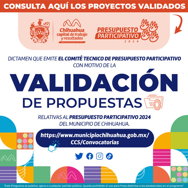 Para conocer los 471 proyectos validados y los centros de votación, se puede visitar el sitio web https://www.municipiochihuahua.gob.mx/CCS/Convocatorias. Para obtener más información, se pueden comunicar al 072 o al 200-48-00, extensión 6557.