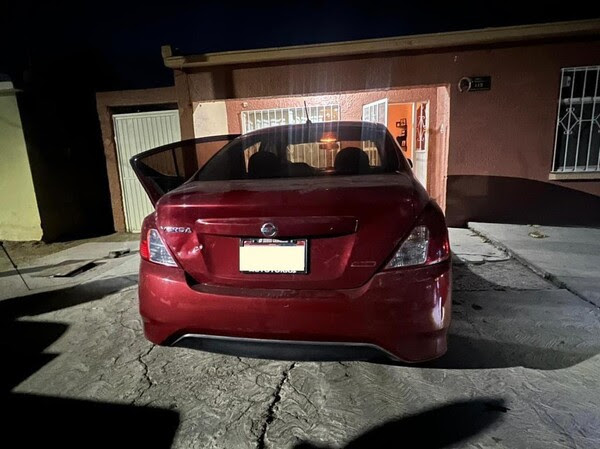En los eventos se observó un auto Nissan de color guinda cuya característica era la falta de la facia de la defensa trasera, el cual fue localizado en la colonia ya mencionada con apoyo de agentes investigadores, cámaras particulares y de la Plataforma Escudo Chihuahua.