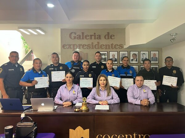 La asociación de Comerciantes del Centro (COCENTRO) expresó su reconocimiento a ocho policías municipales por su destacado desempeño en los meses de agosto y septiembre.