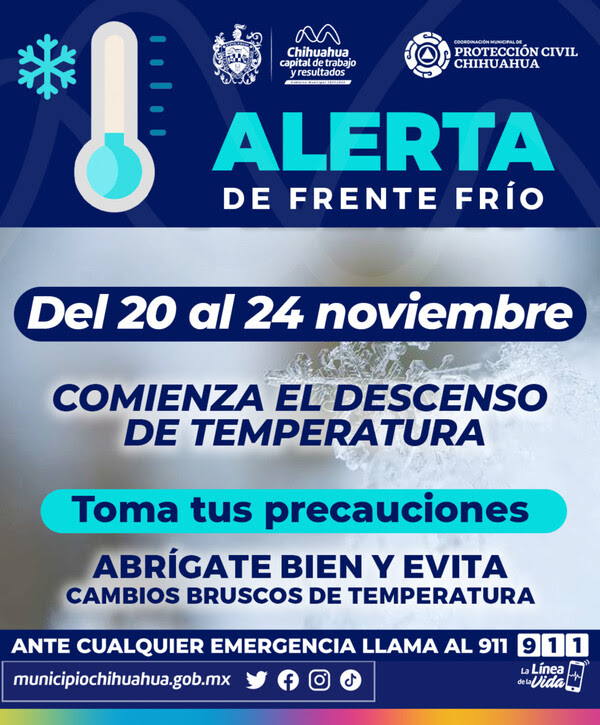 El Gobierno Municipal, a través de la Coordinación Municipal de Protección Civil, ha anunciado la apertura de dos refugios temporales debido al pronóstico de un marcado descenso en las temperaturas durante la próxima semana, del 20 al 24 de noviembre. Estos refugios, Tricentenario y Mármol III, ubicados en las colonias Chihuahua 2094 y Mármol III respectivamente, ofrecerán un ambiente cálido con suministros esenciales y atención médica constante para aquellos que necesiten resguardarse de las inclemencias climáticas.
