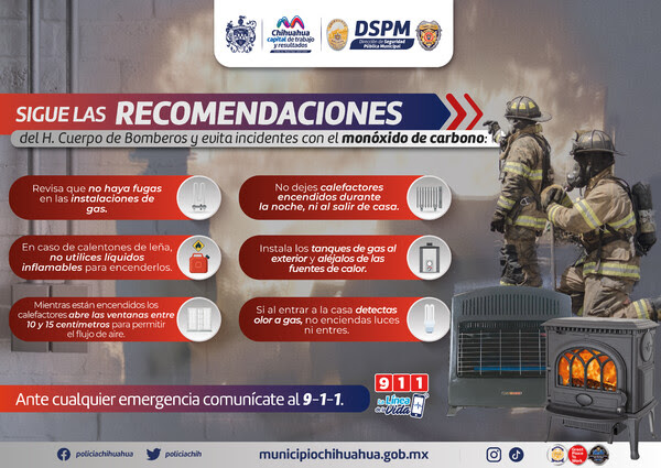 El Gobierno Municipal busca crear conciencia entre los residentes de Chihuahua sobre la gravedad del monóxido de carbono, conocido como el «asesino silencioso» por ser inodoro e incoloro. En años anteriores, su mal uso ha causado lesiones graves e incluso la muerte. Juan Manuel Morales Alvarado, jefe de Bomberos de Chihuahua, advierte que cualquier dispositivo que utilice fuego, ya sea un calentador a gas, a leña o una chimenea, puede generar monóxido de carbono. Por lo tanto, es crucial extremar precauciones para prevenir incidentes lamentables.
