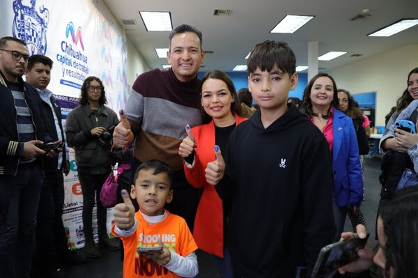 El alcalde Marco Bonilla, junto con su familia, acudió a votar hoy al mediodía por los proyectos del Presupuesto Participativo destinados a mejorar las escuelas y la zona en la que viven. Además, hizo un llamado a los ciudadanos de Chihuahua para que salgan a votar este sábado hasta las 7:00 de la tarde y mañana domingo de 9:00 de la mañana a 7:00 pm.
