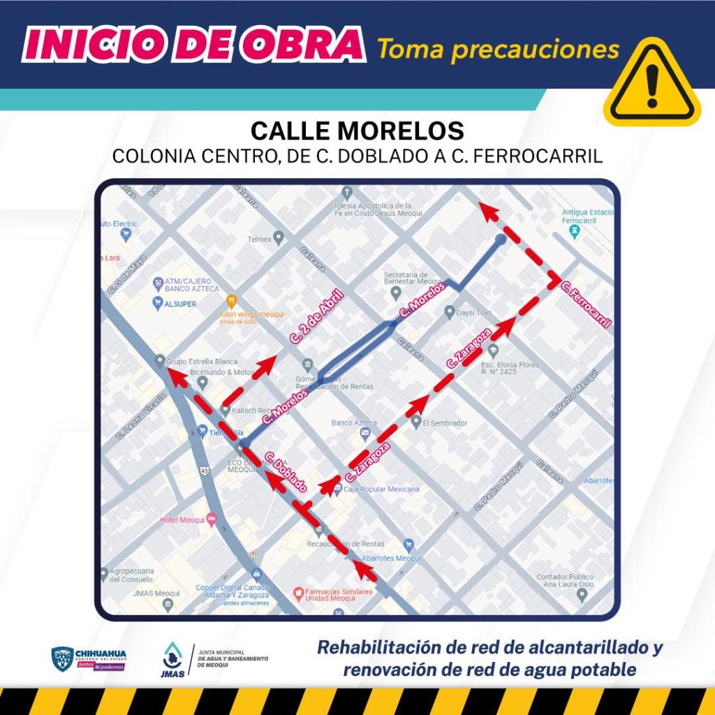 La JMAS hace un llamado a los transeúntes que utilizan la calle Morelos en diciembre, instándolos a tomar rutas alternas para evitar retrasos en su trayecto.